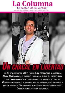 El 28 de octubre de 2007, Pablo Amín estranguló a su esposa María Marta Arias, le extrajo los ojos y mutiló su cuerpo, para luego arrastrarla por las escaleras de un hotel tucumano. Considerado uno de los asesinos más peligrosos, fue condenado a prisión perpetua. Sin embargo, hoy goza de salidas transitorias. Crónica de una historia de horror.
